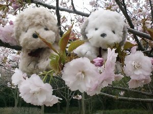 近くのJ公園へお花見に行きました 土曜 日曜日を避け 出かけましたが ちょっと花曇で 桜ももう盛りを過ぎて 花吹雪の中を歩きました 八重桜がもう満開です